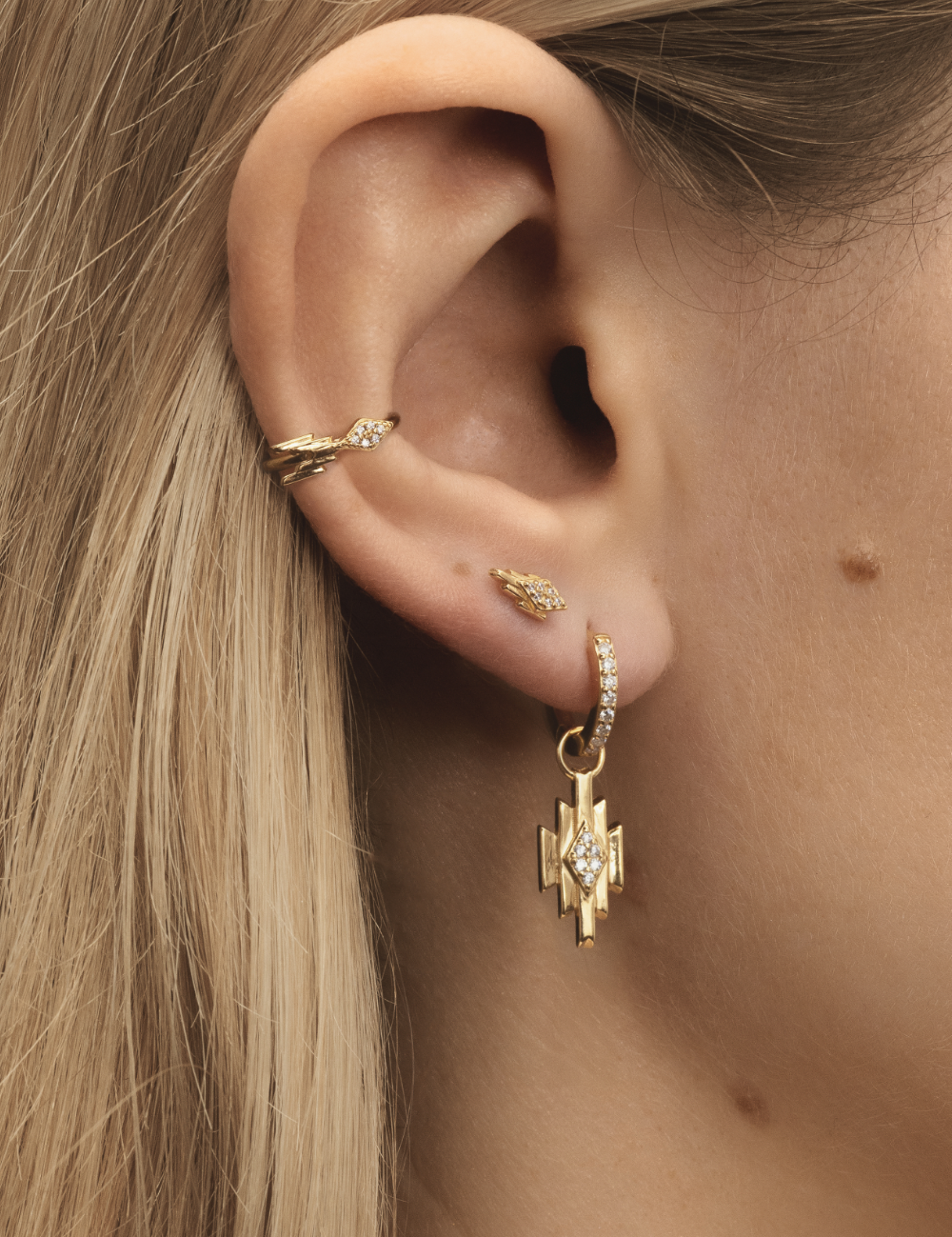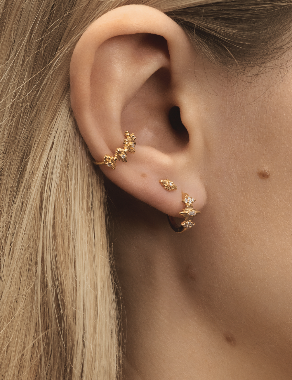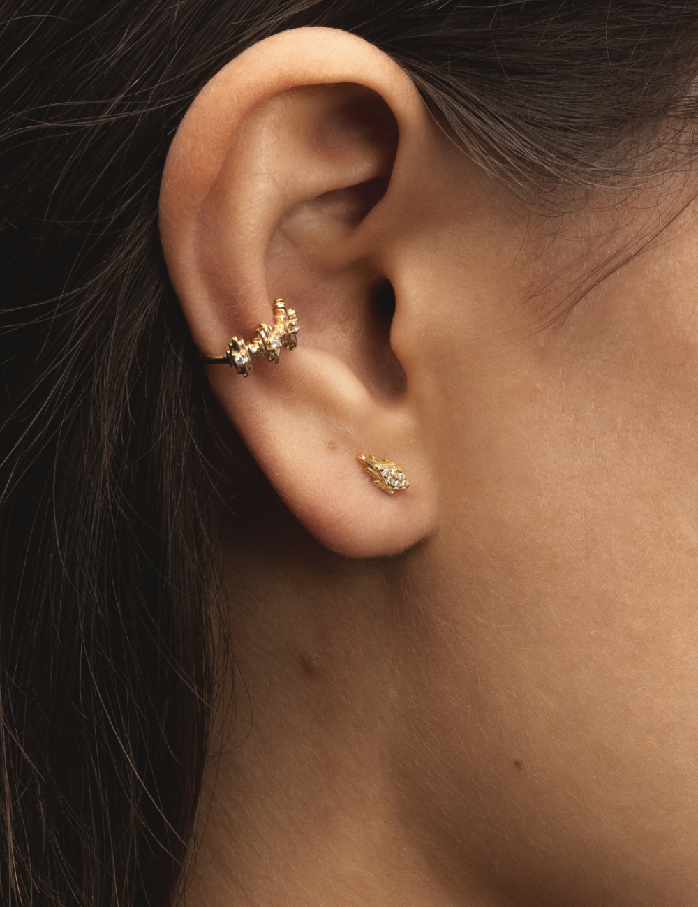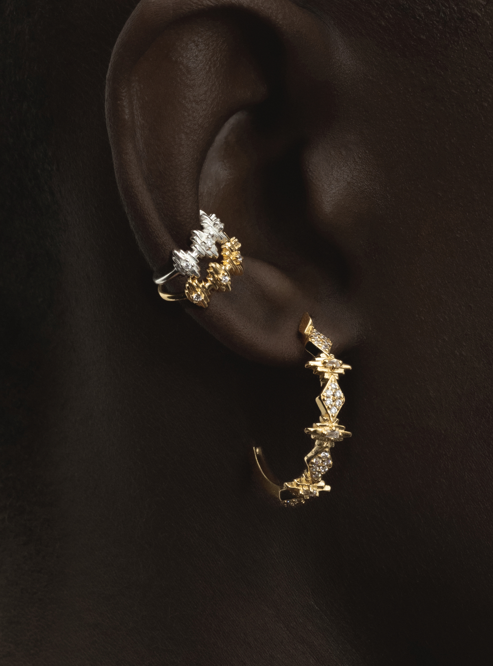 Ear stack featuring one Baya hoop and one Cai earcuff.