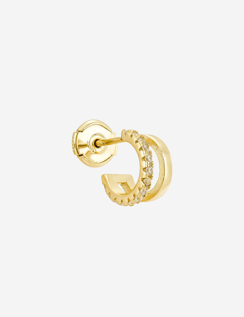 Double créole trompe l'oeil de 8 et 6 mm de diamètre intérieur. S'attache comme une puce à un seul trou.